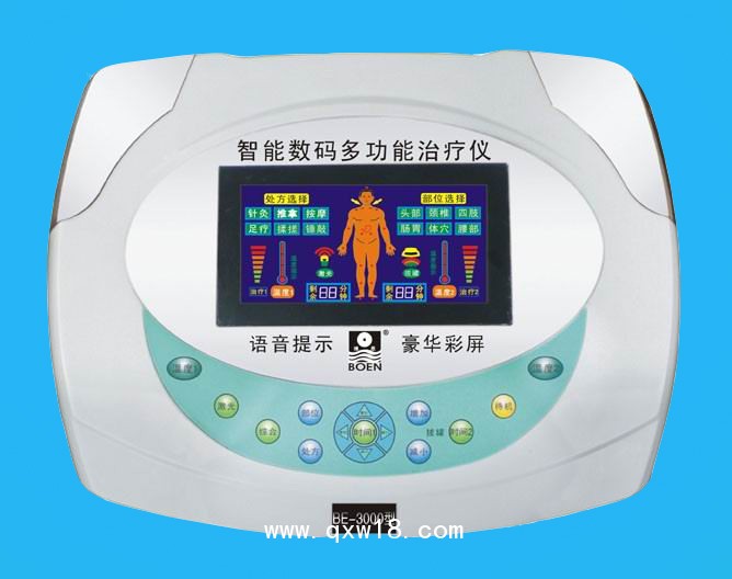 博恩牌“智能數(shù)碼多功能治療儀(原名:多功能經(jīng)皮給藥治療儀)是根據(jù)中國(guó)傳統(tǒng)中醫(yī)理論、以人體經(jīng)絡(luò)學(xué)為基礎(chǔ),結(jié)合生物物理學(xué)及現(xiàn)在數(shù)字電子技術(shù),離子導(dǎo)入技術(shù)研制開(kāi)發(fā)的高科技產(chǎn)品。由于人體病變由多種因素產(chǎn)生,本治療儀根據(jù)人體經(jīng)絡(luò)學(xué)為原理,采用“多功能綜合治療”的方法,采取針療及按摩、中醫(yī)藥離子導(dǎo)入、中頻脈沖治療技術(shù)、遠(yuǎn)紅外熱療、負(fù)壓電治療等綜合治療方法,使人體經(jīng)絡(luò)內(nèi)外氣血通暢、陰陽(yáng)協(xié)調(diào)、表里合一。