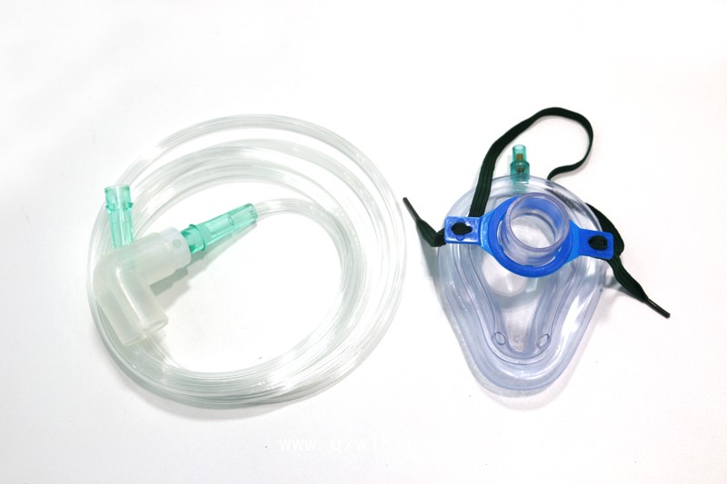 一次性輸氧面罩按配置分為三種型式,A型由面罩墊、輸氧管組成,B1型由面罩、松緊帶、U型(進(jìn)出氣口)閥體接頭、活瓣、回路管組成,每種分成人(大號(hào))、成人(中號(hào))、兒童號(hào)三種規(guī)格。面罩墊、輸氧管采用PVC制成,Y型、U型閥體接頭采用ABS制成,回路管采用乙烯-乙酸乙烯脂共聚樹脂制成。產(chǎn)品應(yīng)無菌。