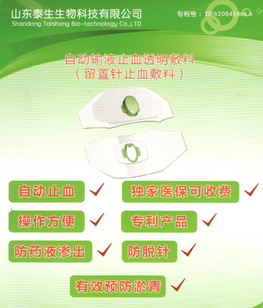 留置針止血敷料山東泰生生物科技產(chǎn)品說明: