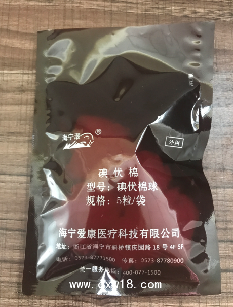 碘伏棉分為碘伏棉簽和碘伏棉球兩個型號,是由0.45%~0.55%(W/V)的碘伏溶液與醫(yī)用棉球或醫(yī)用棉簽加工制成。碘伏消毒液符合GB26368-2010的要求。產(chǎn)品用于注射、輸液前對完整皮膚消毒,細菌總數(shù)不超過20cfu/g,并不得檢出真菌和致病菌。