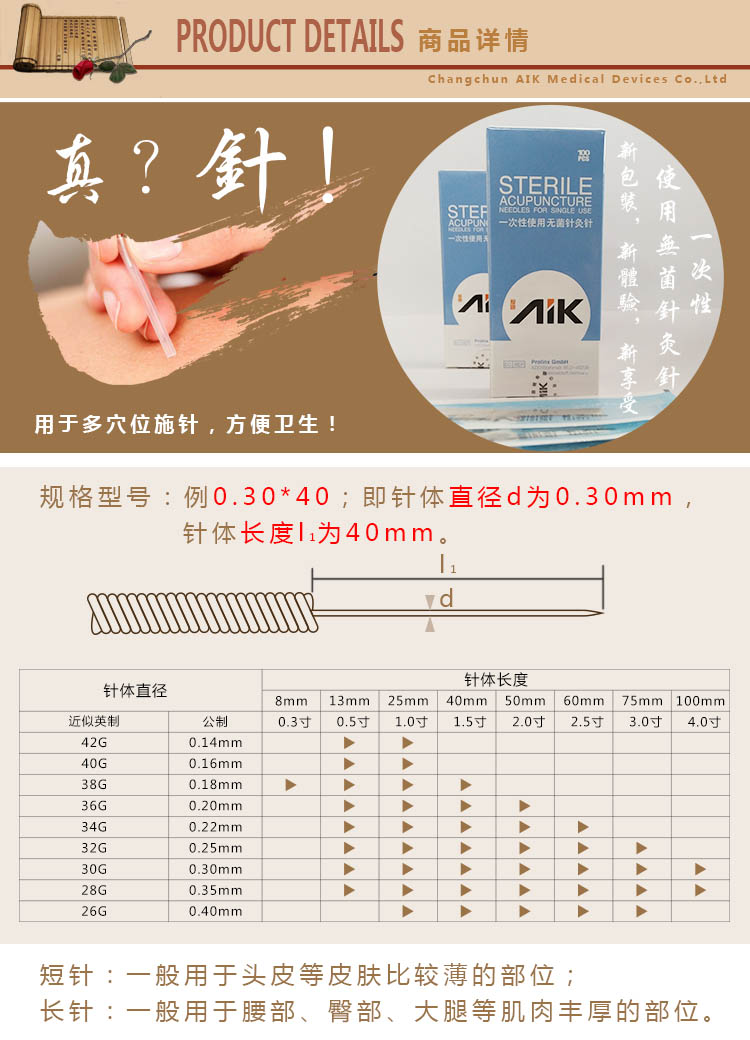 愛康牌一次性使用無菌針灸針產(chǎn)品說明: