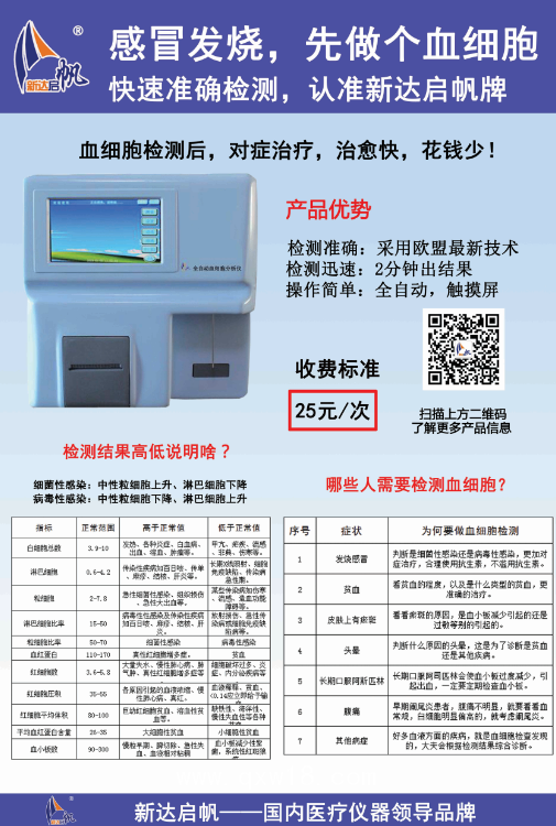 新達(dá)啟帆全自動(dòng)血細(xì)胞分析儀¥28000元產(chǎn)品說明: