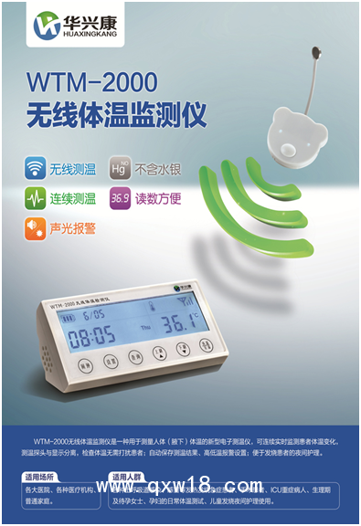 無線體溫監(jiān)測儀是具有測溫和溫度變化實時監(jiān)測的多功能的最新款電子體溫計,它采用獲得國家專利的傳感技術,實現測量結果的無線發(fā)射和接收,能快速準確地測量人體溫度變化及體溫變化,比起傳統(tǒng)的體溫計,功能更多更強大,具有讀數方便,測量時間短,測量精度高等特點,還有實時監(jiān)測體溫變化,測量數據庫存,高低溫報警燈有點。減少了一戶人員工作量,降低因接觸病人而感染病菌的風險,方便醫(yī)護人員對臨床患者的體溫監(jiān)護工作,也可以給家庭使用帶來便利。由于該無線體溫監(jiān)測儀不含水銀,對人體及周圍環(huán)境無害,也與國際上追求無汞的行為吻合,適合于醫(yī)院,家庭使用!