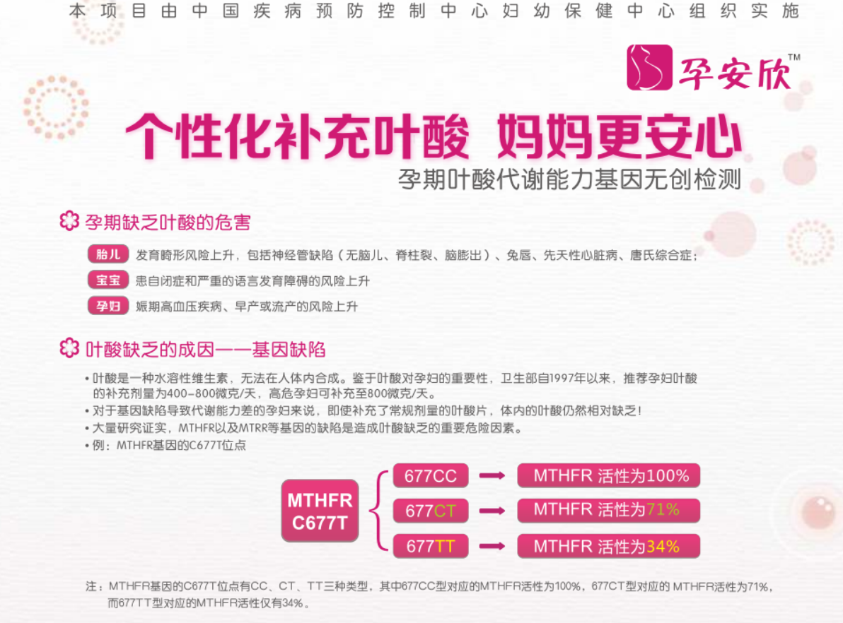 項目特點:篩查出遺傳上存在葉酸代謝存在障礙的商危人群