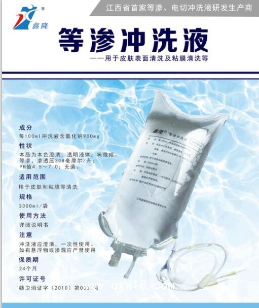 鑫隆牌等滲沖洗液可用于:1、用于各種損傷表面清洗和皮膚及黏膜清洗。2、泌尿外科前列腺汽化電切鏡;婦產科宮腔電切鏡;鈥激光,綠激光,骨科關節(jié)鏡等。3、術后沖洗泌尿外科術后沖洗。