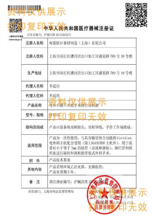 ? ? 該產(chǎn)品是與高頻電外科手術(shù)系統(tǒng)聯(lián)用的手術(shù)器械,適用于外科開放手術(shù)和腹腔鏡手術(shù)中閉合最大達(dá)7mm的血管、淋巴管和組織束,可進(jìn)行電外科切割、凝血或者血管結(jié)扎、組織束閉合處