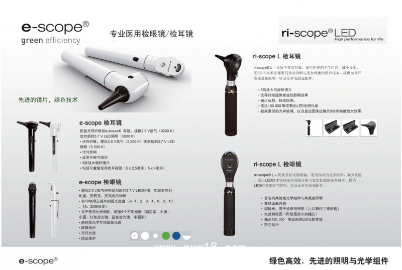 德國(guó)里斯特(Riester?)為五官科檢查提供了一流的便攜式檢查儀器。醫(yī)生和醫(yī)學(xué)院的學(xué)生都可使用e-scope檢耳鏡。輕巧和便攜的設(shè)計(jì)使它們?cè)谘膊?、室?nèi)檢查和日常使用中都是很方便的,是物超所值的。