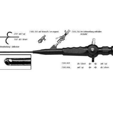 ? | 7331.001? ?3mm纖維輸尿管腎鏡 上彎130° 下彎160° 器械通道4Fr.? 工作長度600mm 包括: 829.601 ??活檢鉗 163.903?? 測漏器 163.904?? 氣閥 7321.911? 清潔刷 | |
