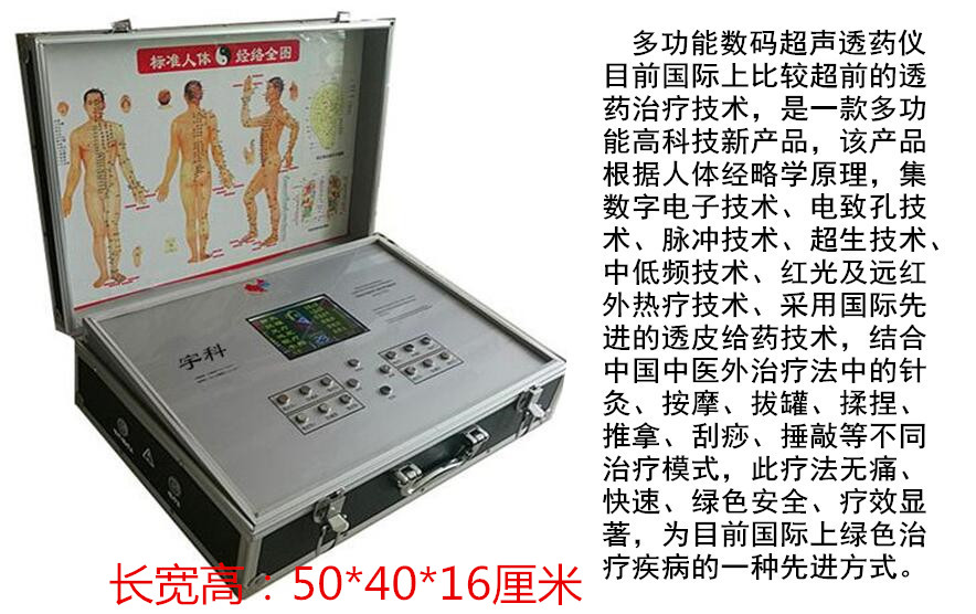新型中醫(yī)定向透藥治療儀中藥離子導(dǎo)入治療儀是第三代給藥方式,采用目前國(guó)際上比較超前的運(yùn)動(dòng)式交變螺旋磁場(chǎng)、定譜遠(yuǎn)紅外、深入可變式電熱、定向?qū)ΨQ脈沖、超生電靶位等比較先進(jìn)的透化技術(shù),結(jié)合中藥低溫萃取、納米孢子破壁處理及中醫(yī)中藥內(nèi)病外治的原理,可將中藥精華靶向的送到病灶部位。此療法無(wú)痛、快速、綠色安全,此過(guò)程中不會(huì)改變藥物的結(jié)構(gòu)和性質(zhì),為目前國(guó)際上治療疾病的一種先進(jìn)的方式,真正實(shí)現(xiàn)了無(wú)痛、無(wú)創(chuàng)靶位精確治療。