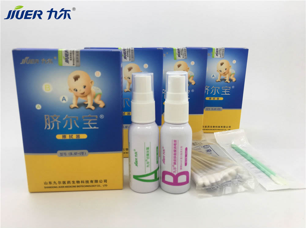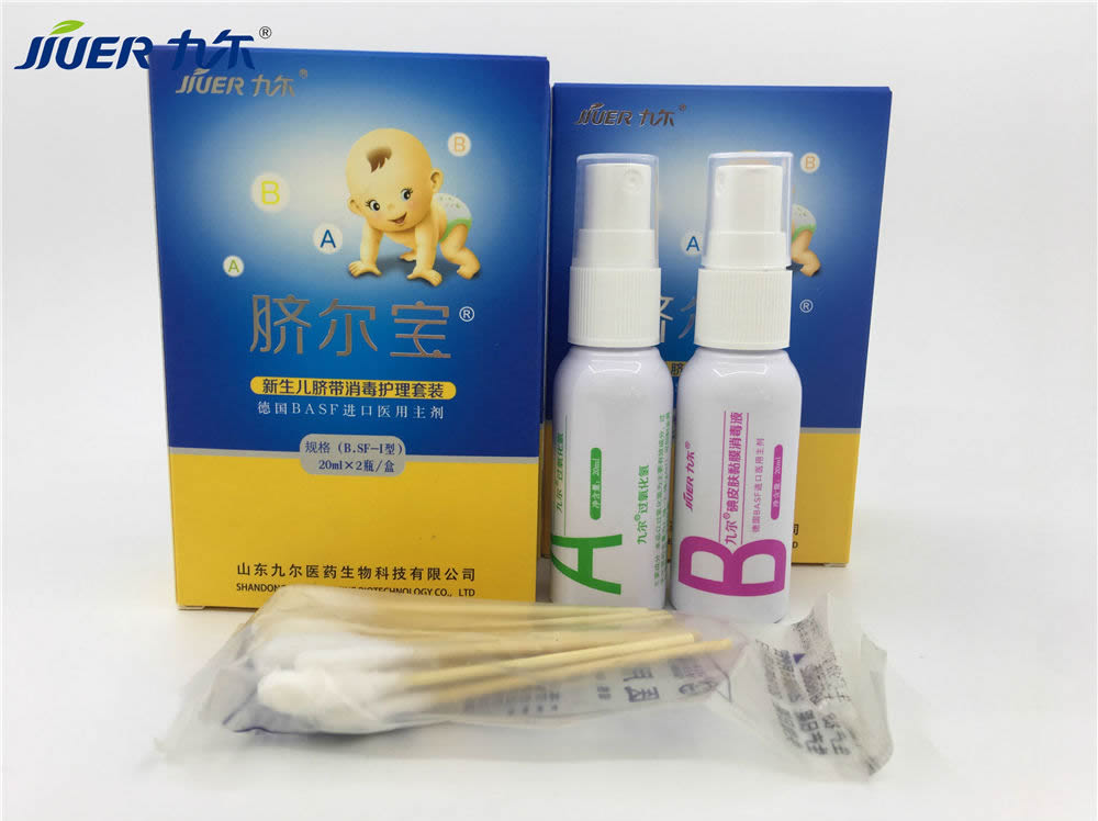 (3)新生兒沐浴后臍部消毒:擦干臍部后,用臍爾寶B瓶中的醫(yī)用消毒液擦拭即可。嬰兒皮膚先用臍爾寶A瓶中的溶液噴涂臍部,清潔其滲出物或膿性分泌物。然后再用臍爾寶B瓶中的溶液消毒護(hù)理臍帶,每日2次。