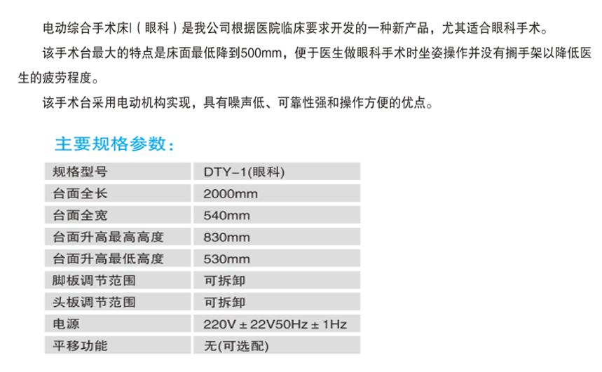 山東眾佳S13 DTY-1電動(dòng)眼科手術(shù)床產(chǎn)品說明: