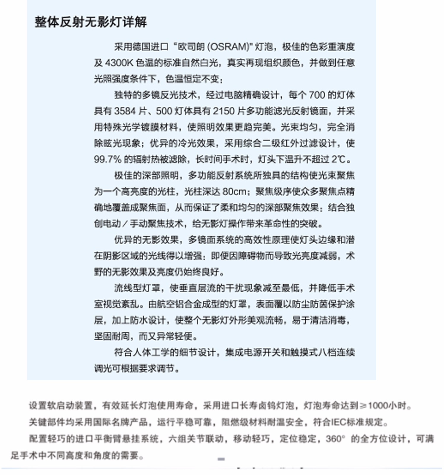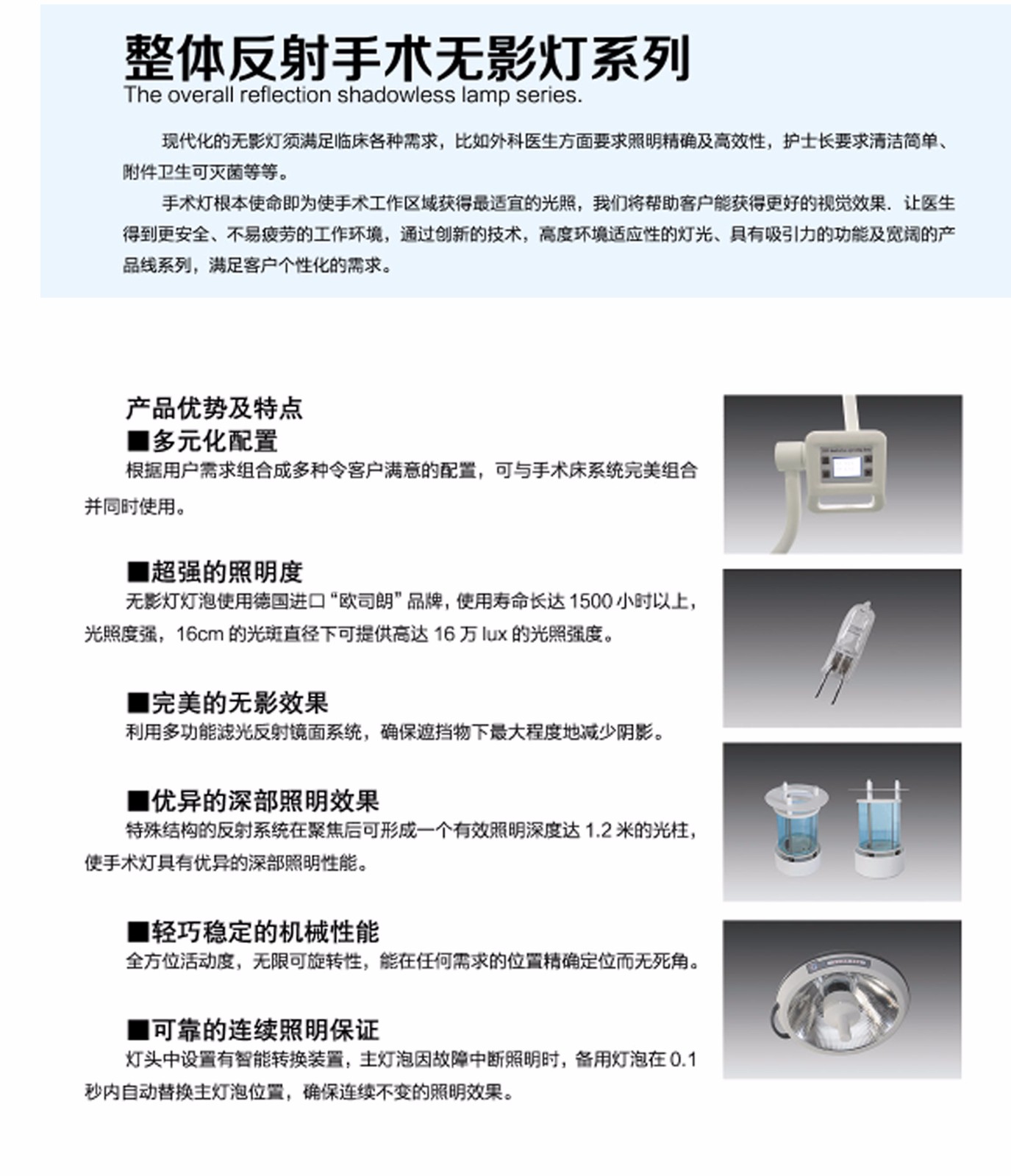 山東眾佳LA1 700/700HSD整體反射無影燈產(chǎn)品說明:
