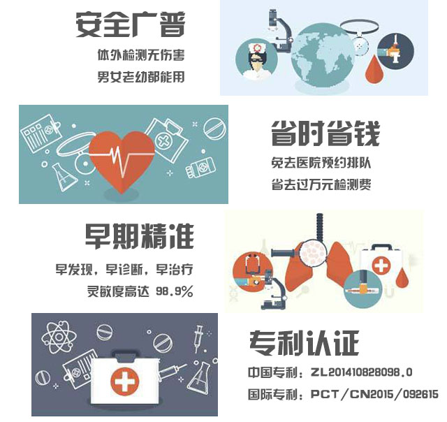 1)?早期精準:在癌癥臨床前期就能檢測出異常,臨床檢測證明檢出率高達98.9%,特異性98.7%;