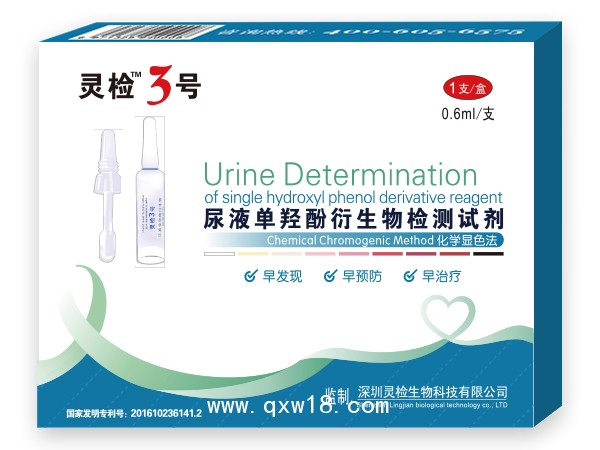 靈檢3號(hào)癌癥尿液檢測(cè)試劑,只需3分鐘,3毫升尿液,給身體做個(gè)抗癌檢查,通過(guò)尿液就能檢測(cè)出是否有癌癥隱患。癌癥尿液檢測(cè)試劑,一種用于早期發(fā)現(xiàn)腫瘤的癌癥尿液檢測(cè)試劑,歷經(jīng)十幾年時(shí)間于2005年研發(fā)成功,并獲得國(guó)家食品藥品監(jiān)督管理局批準(zhǔn)。產(chǎn)品名:尿液?jiǎn)瘟u酚衍生物檢測(cè)試劑,早期發(fā)現(xiàn),早篩查,是治療腫瘤的關(guān)鍵。腫瘤的發(fā)展分為5個(gè)階段:良性、腫瘤細(xì)胞啟動(dòng)期、腫瘤早期、腫瘤中期、晚期。