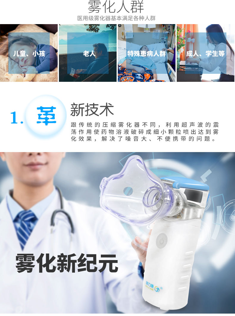 醫(yī)用手持微網(wǎng)霧化器 便攜式霧化器3微米顆粒 靜音產(chǎn)品說明: