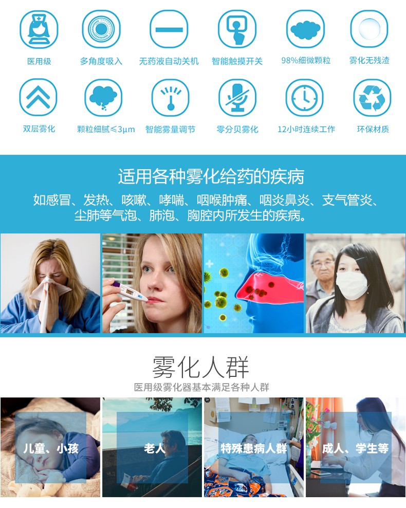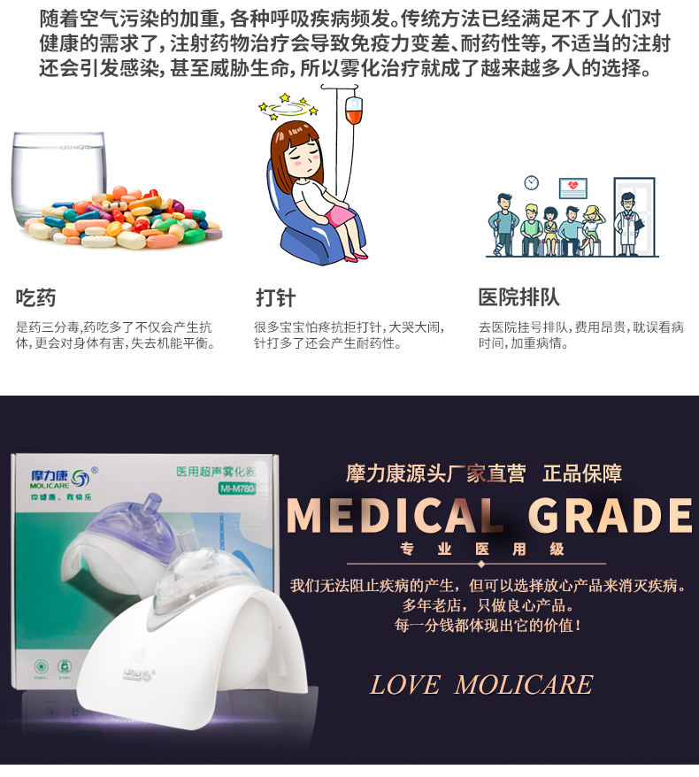 摩力康新款醫(yī)用級(jí)超聲波霧化器 可調(diào)出霧細(xì)膩霧化產(chǎn)品說(shuō)明: