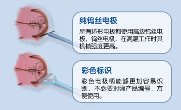 一個環(huán)形電極可以得到幾個不同的電切深度,在定的手術中提供特定的環(huán)形電極,也減少了匹配各種尺寸電極的需要。
