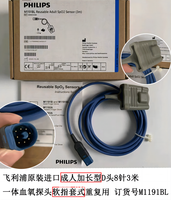 飛利浦全新原裝進(jìn)口 成人加長(zhǎng)型D頭8針 3米 一體血氧探頭 成人指套 重復(fù)用 REF:989803144381 訂貨號(hào)M1191BL?
