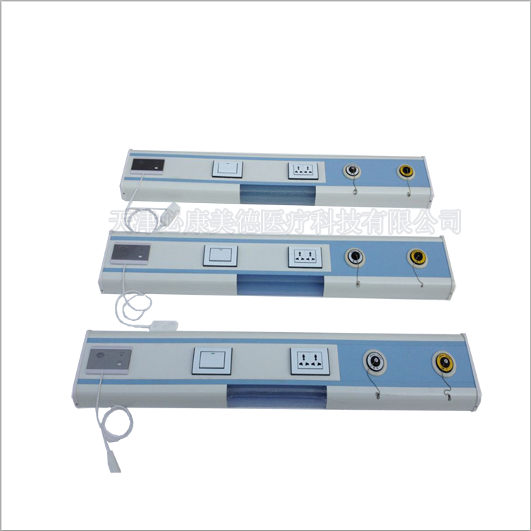 在病房內(nèi),氣體終端等設(shè)備安裝在設(shè)備帶上,每個(gè)病房或相鄰的兩個(gè)病房共用一個(gè)氣體截止閥,用于啟閉管道。中國醫(yī)療機(jī)構(gòu)規(guī)定,所有的中心供氧的銅管不允許埋設(shè)在墻壁內(nèi),而只能安裝在管道或吊頂內(nèi)。因此,一般的解決方案就是病房內(nèi)都要安裝醫(yī)用設(shè)備帶。在中國,設(shè)備帶的寬度和墻面的寬度相同,而在其它國家,設(shè)備帶的寬度通常為1.2m或1.5m。