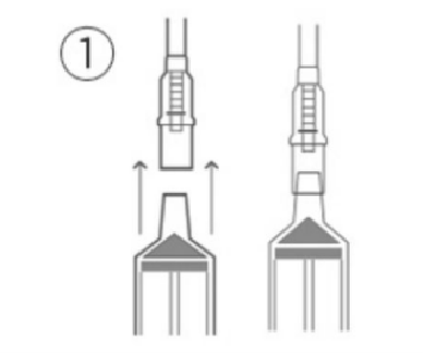 1、打開(kāi)包裝,用消毒紙巾進(jìn)行消毒后,推出配套注射器里的空氣,把注射器穩(wěn)固地插入理療器的開(kāi)口端。