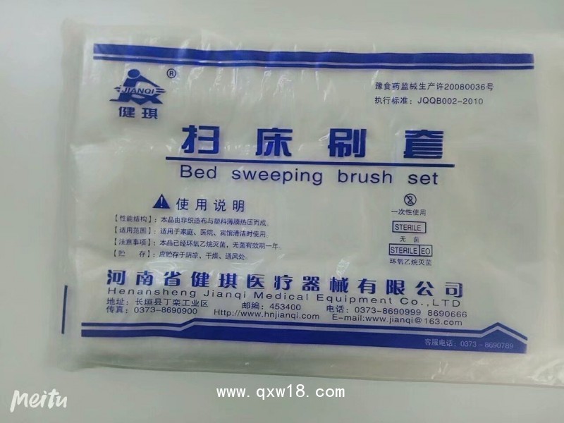 1、本品由含消毒液的薄型粘合法非織造布制成,是普通床刷的配套裝置,可容納包裹床刷。?? 2、專用床刷配消毒刷套,一次裝套掃5次,避免刷套毛巾一裝一卸掃一床的繁瑣,挺高工作效率。?? 3、消毒徹底,避免交叉感染。4、規(guī)格:10cmx25cm??? 5、經(jīng)環(huán)氧乙烷滅菌,有效期為一年? 6、適用范圍:適用于臨床日常護理,避免交叉感染。