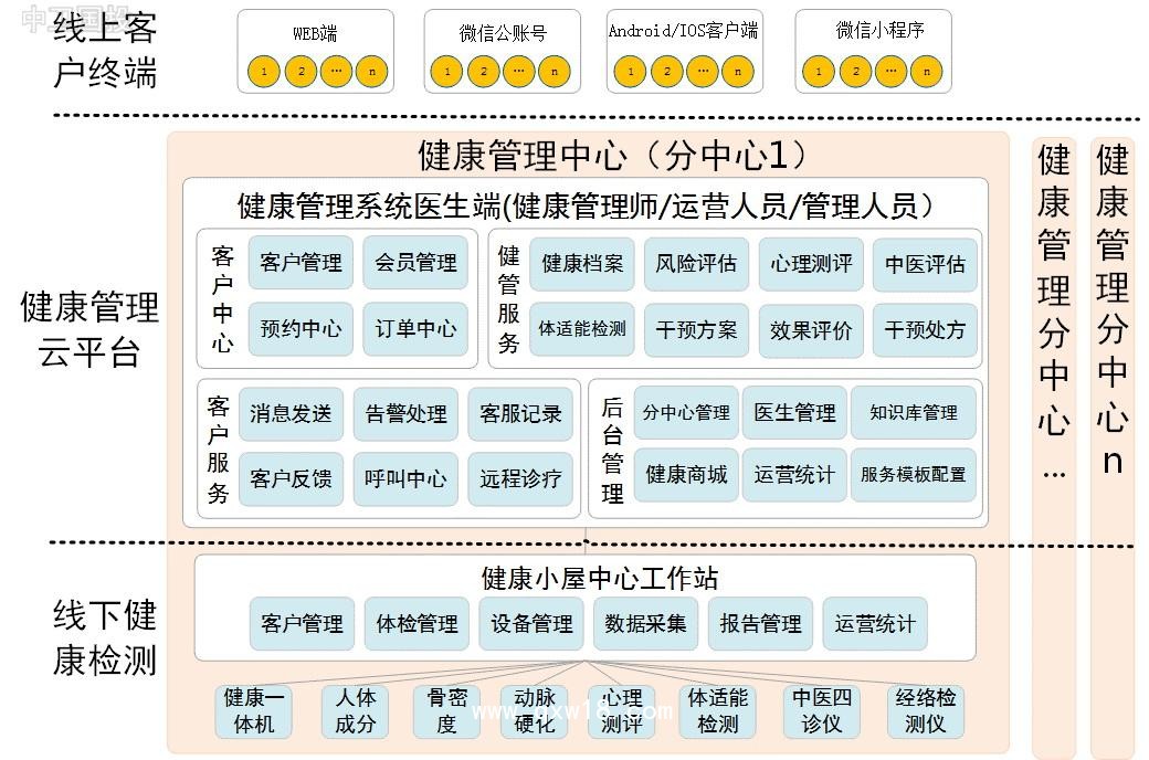 (2)支持多個健康管理中心(分中心)同時運營,總部集中管理的模式。一次建設(shè),多中心運營;