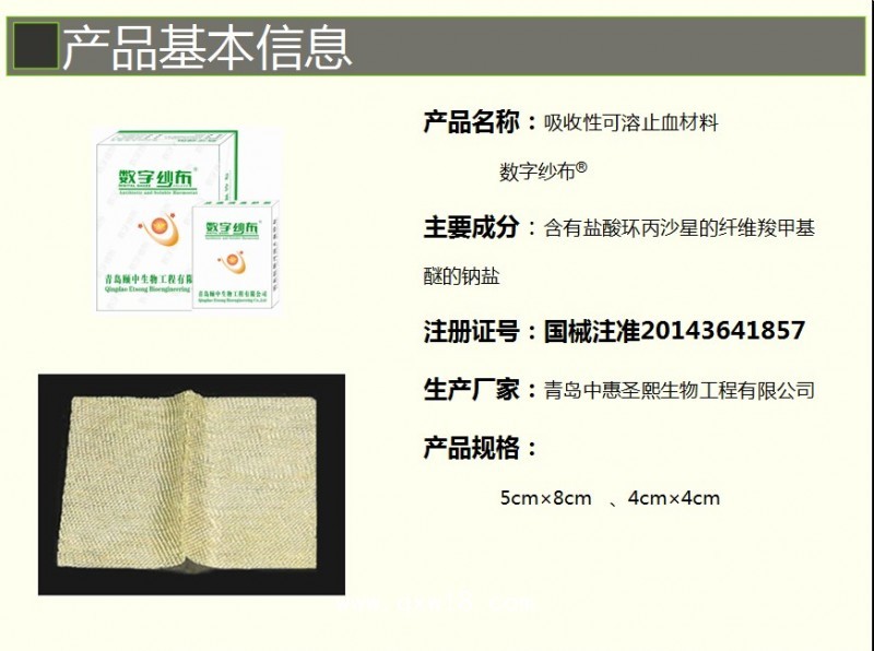可溶性止血紗布吸收性可溶止血材料(數(shù)字紗布)產(chǎn)品說明: