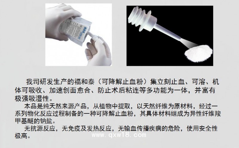 可降解止血粉(福和泰)、止血紗布等止血類耗材產(chǎn)品說明: