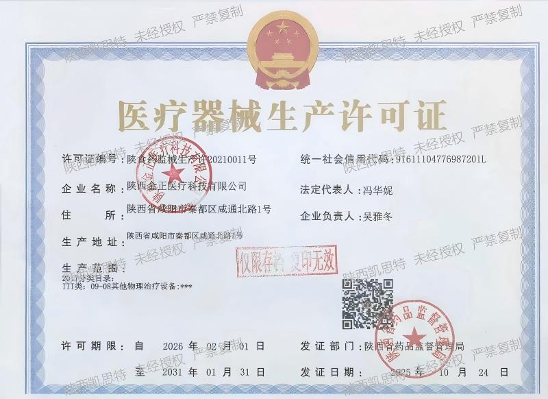 醫(yī)療器械生產(chǎn)許可證編號(hào):陜食藥監(jiān)械生產(chǎn)許20210011號(hào)