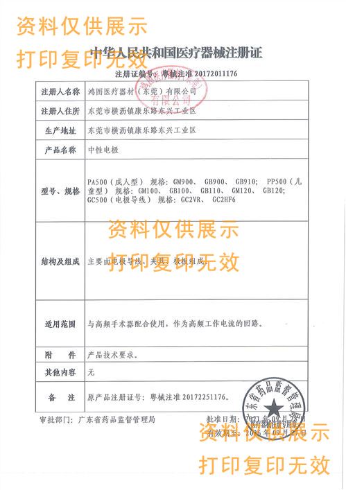 適用范圍:與高頻手術(shù)器配合使用,作為高頻工作電流的回路