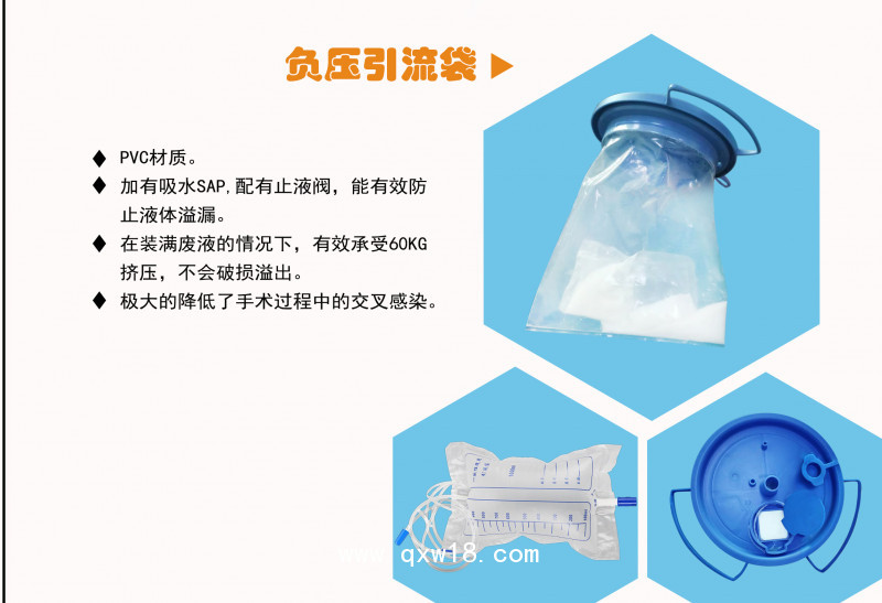 使用說明:將引流袋上的引流導(dǎo)管與插入患者體內(nèi)的引流導(dǎo)管相連接,懸掛于患者體側(cè)