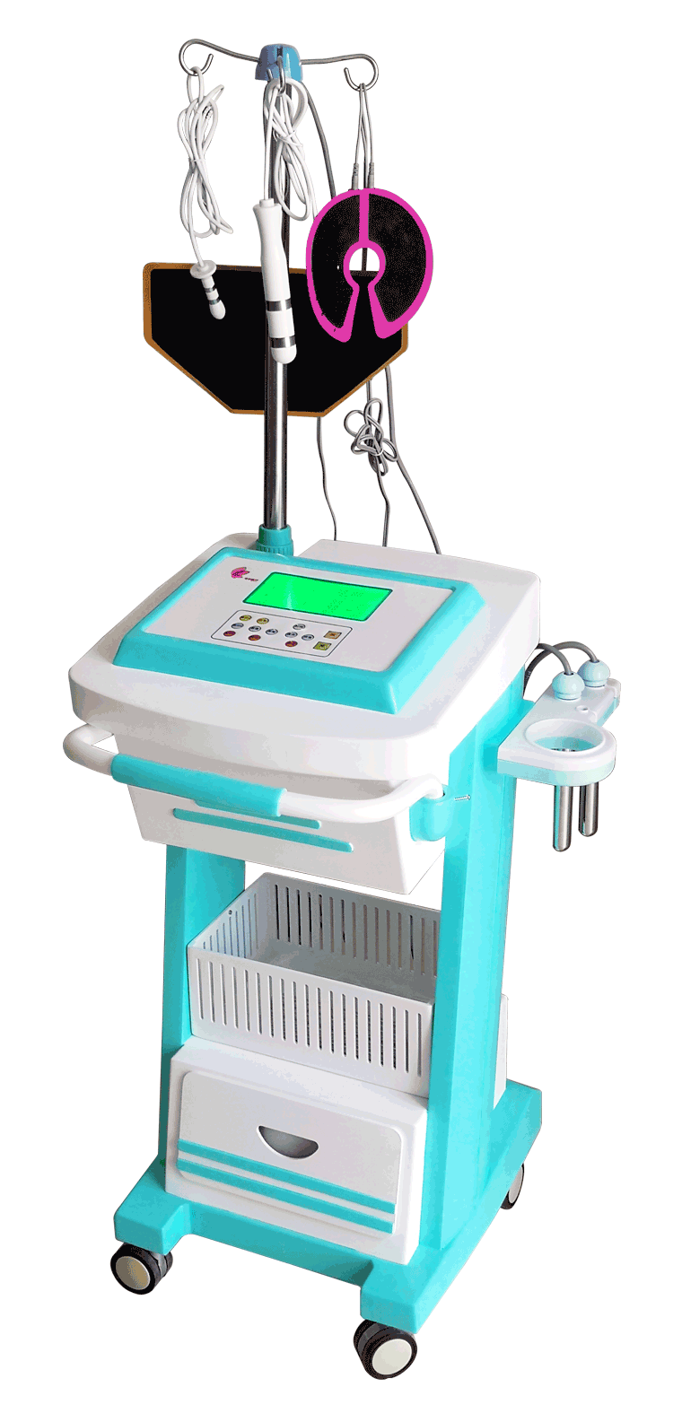 主要構(gòu)成:由電氣主機(jī)、腹部導(dǎo)電橡膠電極、腔內(nèi)不銹鋼電極組成