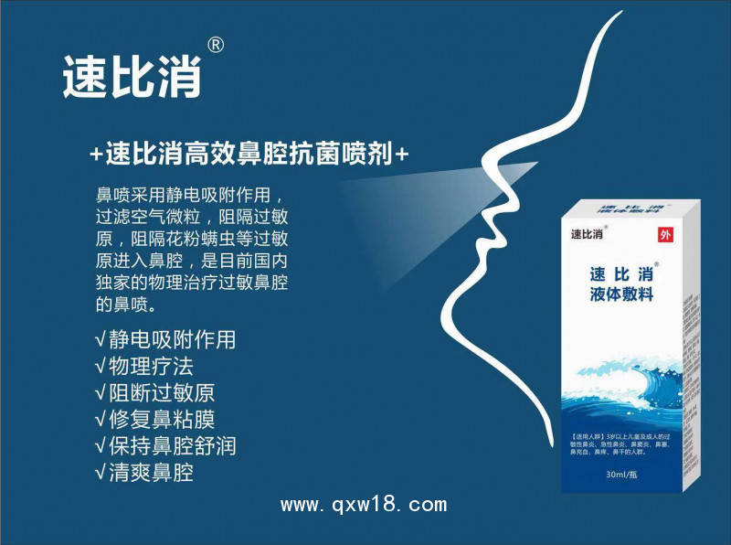 廣東藥科大學聯(lián)合研發(fā),使用新型生物材料季銨鹽和羥乙基纖維素。利用專利分子技術(shù)制作成一種無激素、無藥物、無副作用的一款針對各種類型鼻炎(可用于兒童和孕婦)天然物理液體噴劑。