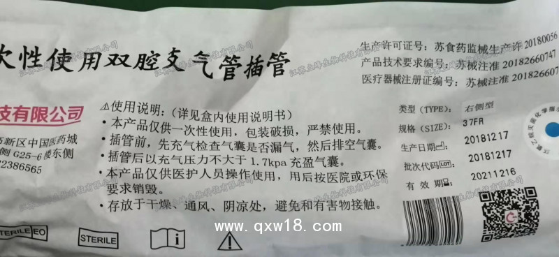 立峰生物一次性使用雙腔支氣管插管 右側(cè)37Fr產(chǎn)品說明: