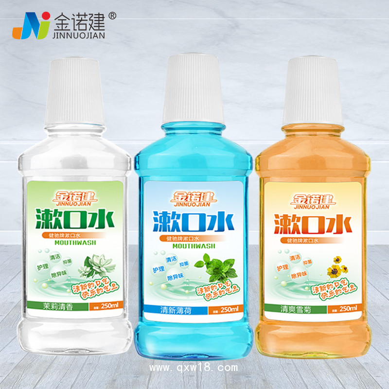 | 補充說明 | 金諾建漱口水,用于口腔的抑菌、清潔、護(hù)理。金諾建漱口水為外用產(chǎn)品,共有三種口味:勁爽薄荷,茉莉清香、清爽雪菊 【注意事項】 1.不可吞服,兒童不宜使用。 2.對本品過敏者禁用。 3.本品為衛(wèi)生用品類產(chǎn)品,不能代替藥品。 【貯藏】 密閉、避光、置于陰涼處保存。 【有效期】24個月 溫馨提示: 1.早晚刷牙后、或需要清潔口腔時使用; 2.建議每次使用約一瓶蓋,漱口后吐出. 3.行動不便,年老者或兒童使用。使用漱口水前先用清水漱口,幫助食物殘渣從牙齒間隙中沖刷出來,這樣在運用漱口水的時分,能夠讓漱口水大面積的觸摸牙齦,幫助清新口氣和殺菌。將清水含在口內(nèi),煽動兩腮與唇部,使清水在口腔內(nèi)能充分與牙齒、牙齦觸摸,并使用水力重復(fù)地沖刷口腔各個部位,這樣就盡可能清除去存留在牙齒的小窩小溝、牙間隙、牙齦、唇頰溝等處的食物殘渣和軟垢,使口腔內(nèi)的細(xì)菌數(shù)量相對減少,從而到達(dá)清潔口腔的目的。 |