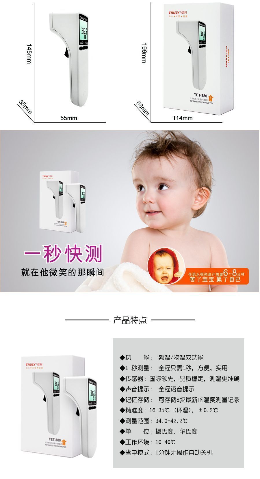 紅外線(xiàn)電子體溫計(jì)TET-380產(chǎn)品說(shuō)明: