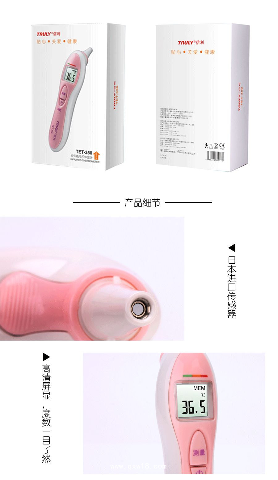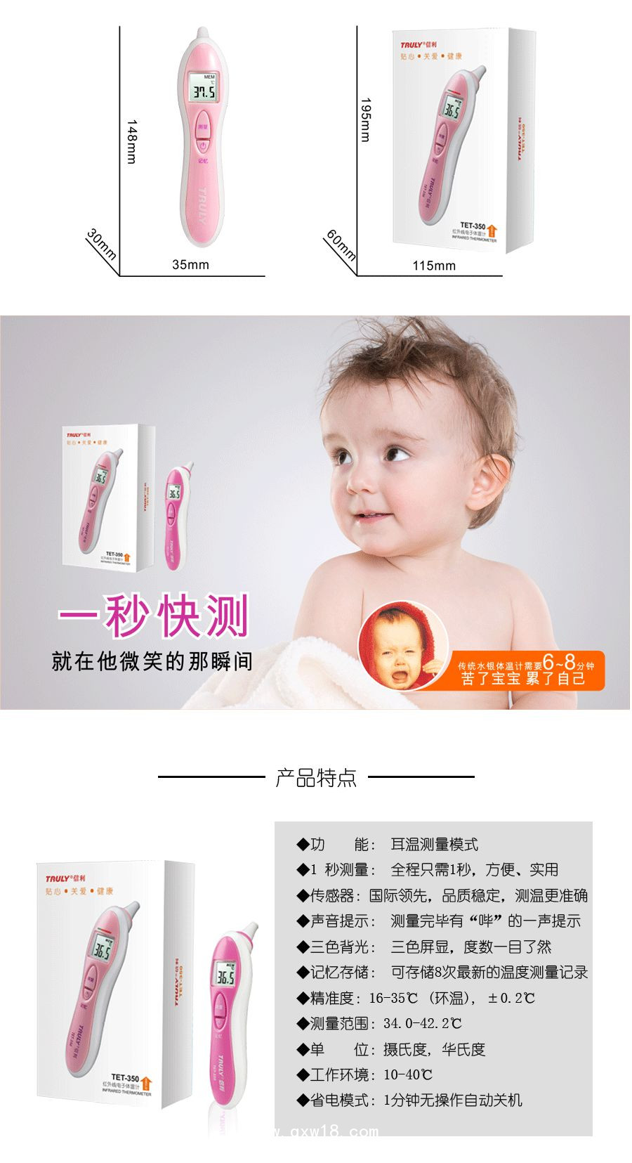 ??4、紅外線耳溫計對于嬰幼兒、重癥病人等操作起來,與其他體溫計相比非常方便,被醫(yī)院廣泛采用,當然也受到家庭的喜歡。