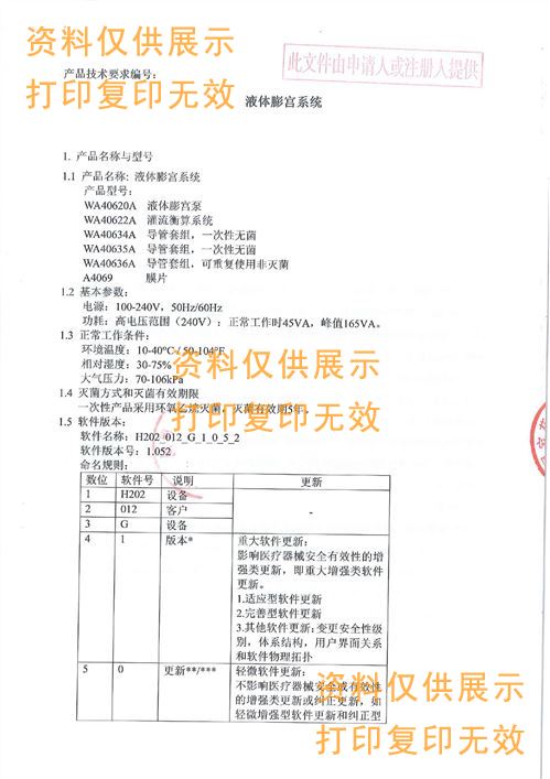 使用范圍:該儀器的作用是在進(jìn)行宮腔鏡診斷和手術(shù)時(shí)通過注入液體擴(kuò)張子宮。同時(shí),本儀器對注入子宮的液體與從子宮中流出液體之間的容積差進(jìn)行監(jiān)控(液體監(jiān)控)。
