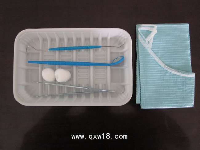 產(chǎn)品描述:一次性使用口腔護(hù)理包可由牙探針、口鏡、脫脂棉球、檢查手套、薄膜手套、牙科鑷、器械鉗、醫(yī)用墊單、棉簽、牙科用毛刷、壓舌板、敷料盤、紗布疊片、非織造布?jí)|單組成。