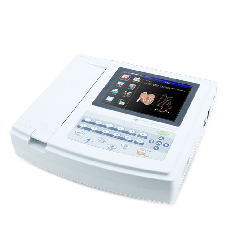 ECG1200G十二道心電圖機(jī)是一種實(shí)現(xiàn)對12導(dǎo)聯(lián)心電信號進(jìn)行同步采集,采用熱陣打印心電波形的心電圖機(jī)。其具備以下主要功能:以手動/自動的方式記錄和顯示心電波形;心電波形參數(shù)的自動測量以及自動診斷;能夠提示電極脫落及缺紙;可切換多種界面語言;交直流兩用供電模式;可選擇節(jié)律導(dǎo)聯(lián),并可打印PR間期趨勢圖及直方圖,便于觀察異常的心率;病歷數(shù)據(jù)庫管理;支持按鍵及觸摸兩種方式操作等功能。