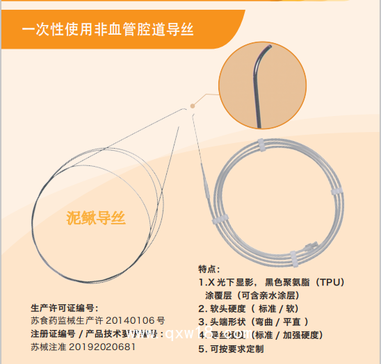 在內(nèi)窺鏡或X射線監(jiān)視下,進入人體自然的非血管腔道,做導引用。