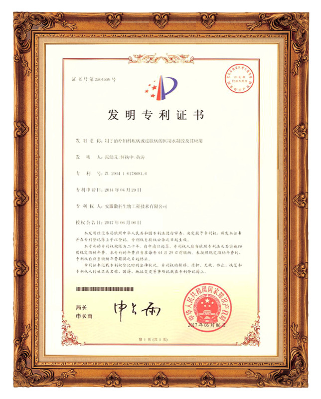 保扶潔醫(yī)用生物水凝膠?????20年發(fā)明專利保護(hù)品種