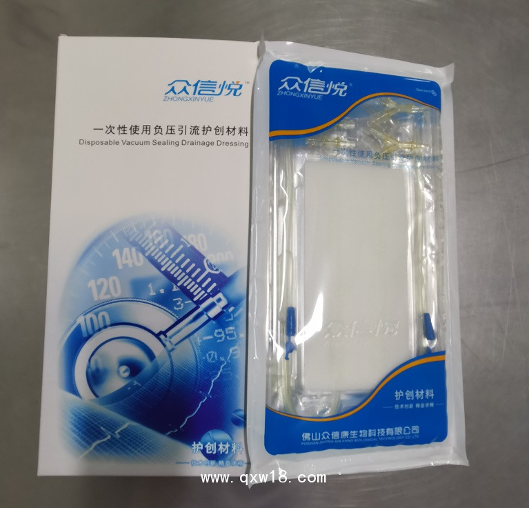 我司生產(chǎn)的負(fù)壓引流裝置擁有優(yōu)良的生物相容性、對(duì)組織無(wú)毒、無(wú)害;良好的機(jī)械性能,彈性、柔軟、多孔;較好的控制和吸收創(chuàng)面滲液、阻止細(xì)菌侵入和抑菌;極好的透水、透氣性能,可以確保負(fù)壓在創(chuàng)面的均勻分布,是創(chuàng)傷負(fù)壓治療的理想材料;刺激肉芽組織的生長(zhǎng)、保護(hù)新生組織、加速創(chuàng)面愈合、止血鎮(zhèn)痛等功能。