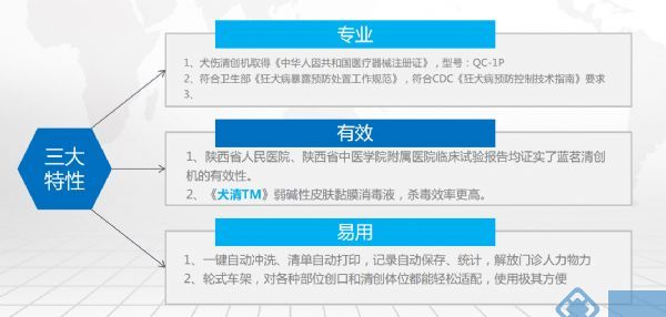 QC-1P犬傷清創(chuàng)機(jī):醫(yī)用創(chuàng)口沖洗機(jī)采用脈動(dòng)壓力技術(shù),使用特制刀頭,采用無(wú)菌包裝的-犬清TM-弱堿性皮膚黏膜消毒液,通過(guò)自動(dòng)化控制程序全自動(dòng)完成高標(biāo)準(zhǔn)的犬傷沖洗處置。藍(lán)茗醫(yī)療QC-1P犬傷清創(chuàng)機(jī)科學(xué)的處置能有效減低傷患創(chuàng)口病毒數(shù)量,極大提升狂犬病預(yù)防有效性;以完全符合國(guó)家規(guī)定的處置程序有效保障犬傷門(mén)診的權(quán)益,規(guī)避醫(yī)療風(fēng)險(xiǎn),避免醫(yī)療糾紛;專(zhuān)業(yè)的沖洗清創(chuàng)設(shè)備可顯著降低對(duì)門(mén)診處置水平要求,減輕處置人員的工作負(fù)擔(dān)。