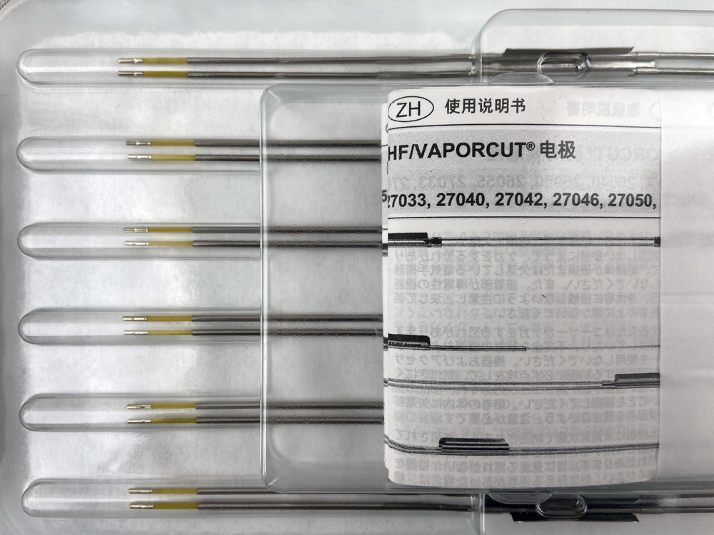 描述:雙極,回流電極為絲狀,配合26Fr.鏡鞘,電極切割絲直徑0.35mm,工作長度286mm