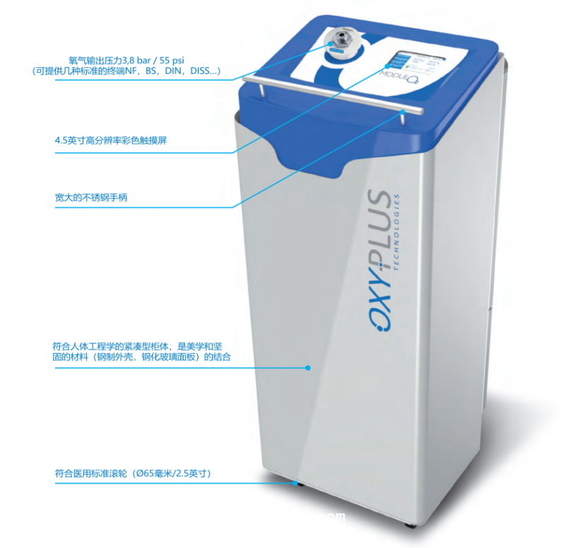 即插即用一體制氧機,適用于用量少或不能獲取醫(yī)用氧氣的地方,也可為手術室和ICU提供備用氧源,OXYPLUS Technologies 設計了ModulO2制氧機,這是人性化和鎬效能的緊湊型制氧機。