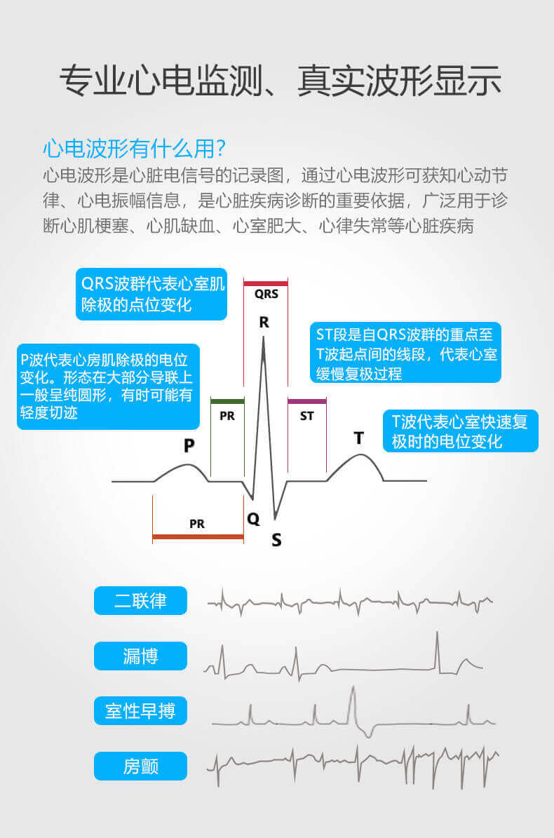 彩屏實(shí)時顯示心電波形;