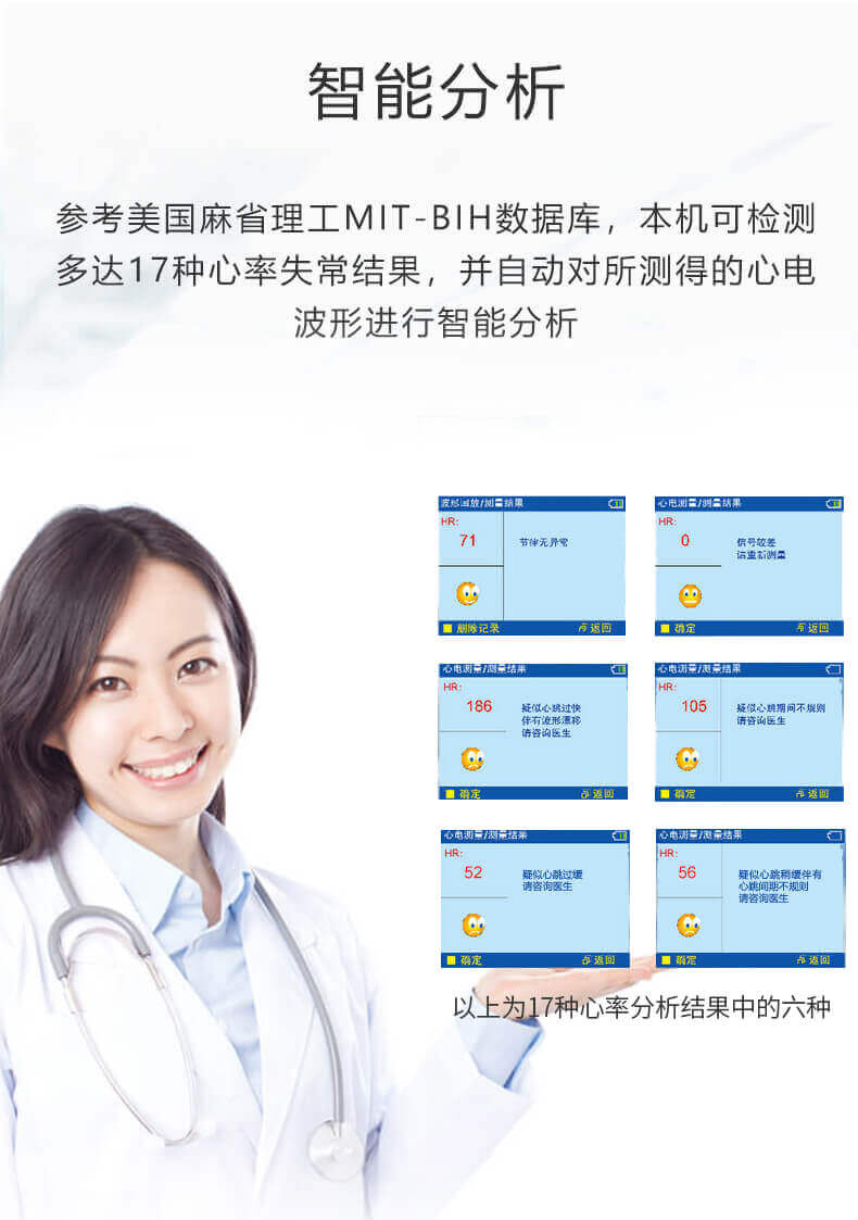 內(nèi)置17種預(yù)設(shè)心電波形診斷分析;