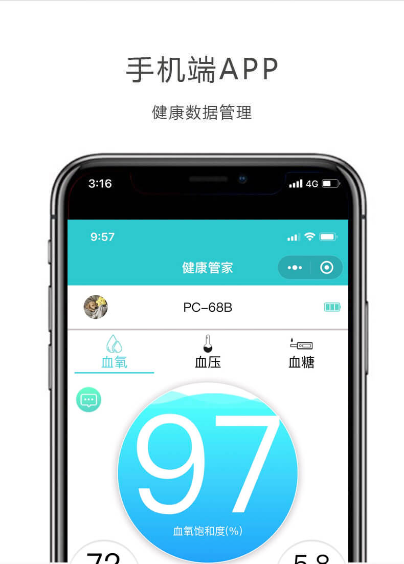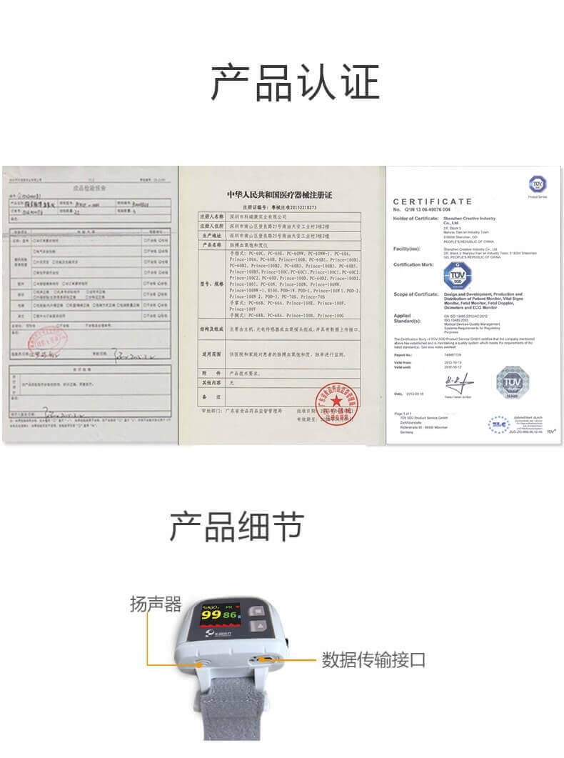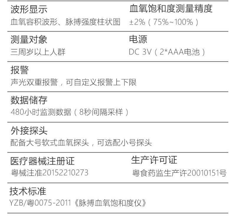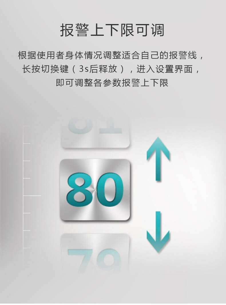 彩色OLED顯示數(shù)據(jù),也可顯示 脈搏強(qiáng)度柱狀圖 和 光容積波形