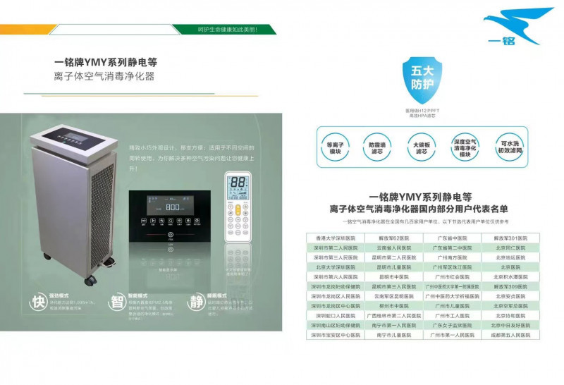 首先感謝您選擇一銘牌有 YMY-1000 型靜電等離子體空氣